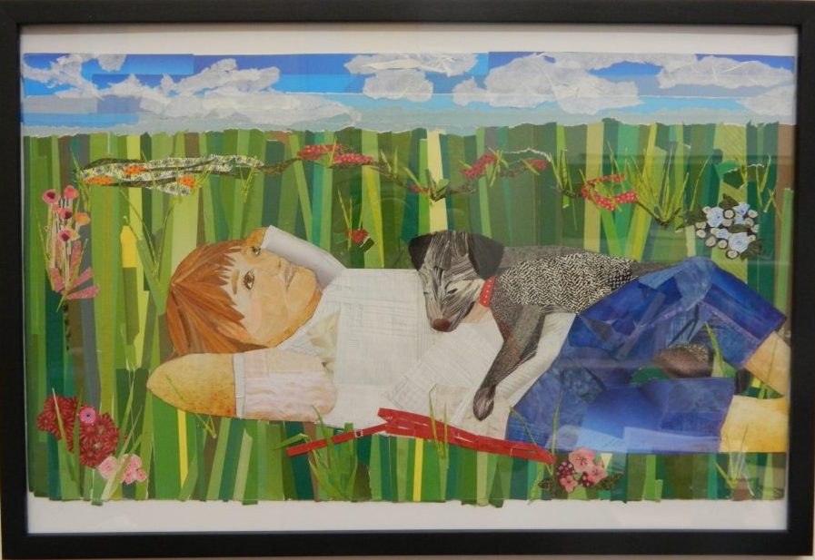 This call for artwork was based on the theme of ‘One Health’, the concept that human health, and the health of animals and the environment are inextricably linked. This image came to my mind right away. Sadly, I think this is a pleasure few children get to have these days – just laying back in a grassy meadow and daydreaming while watching the clouds. Here you may see the progress of this piece as it came together.