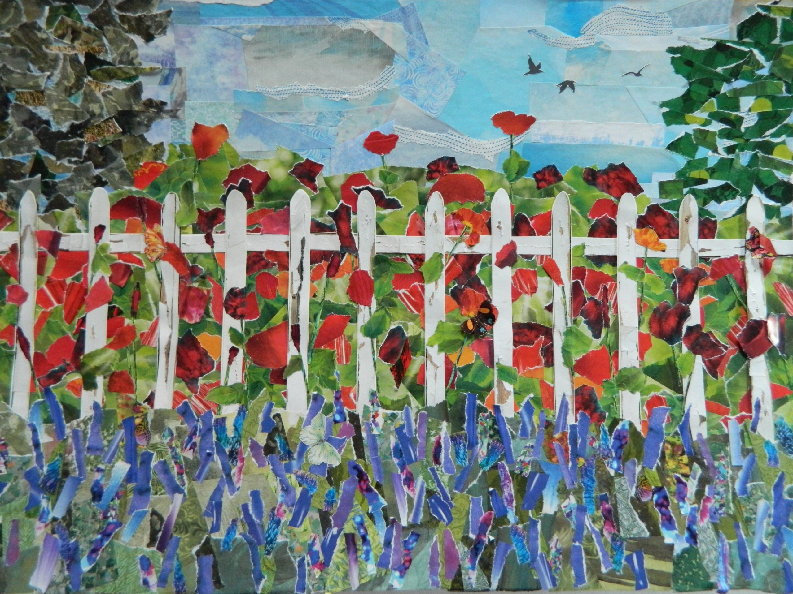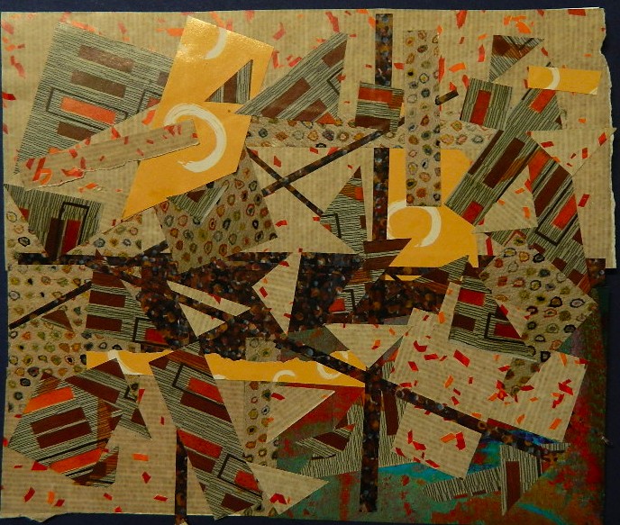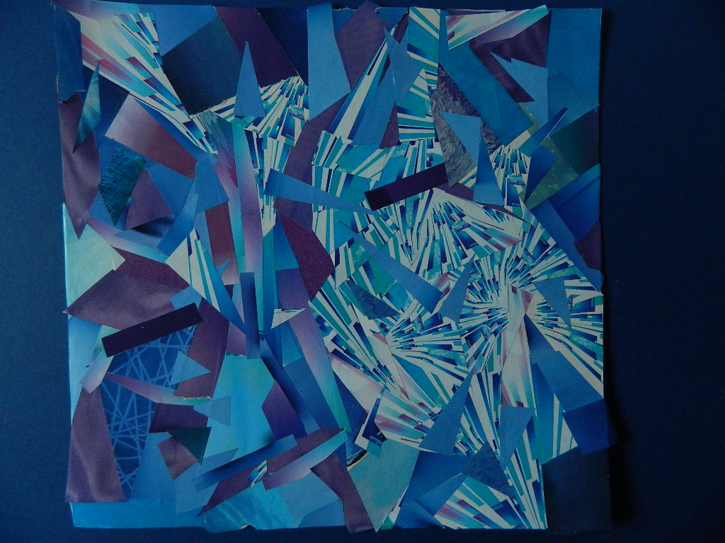 These two pieces were made over winter break while listening to Christmas music. The joyful colors look like they want to just burst! Only the one on the right was in the show; the other one went to my friend who helped me with this website. It’s called ‘A Bunch of Science’. Why? The flower petals in both collages are actually made from graphs and diagrams found in scientific magazines!
